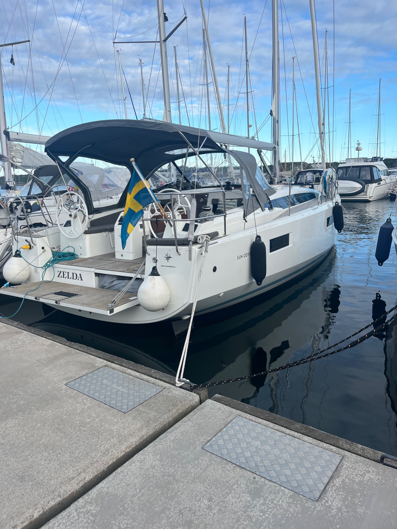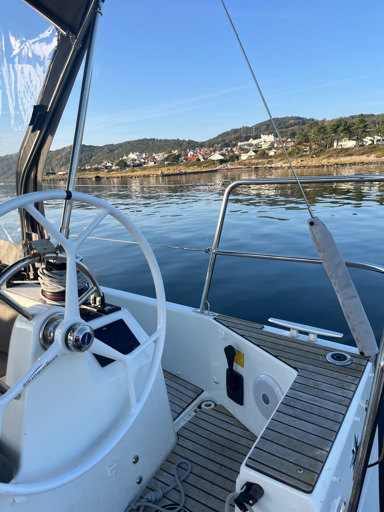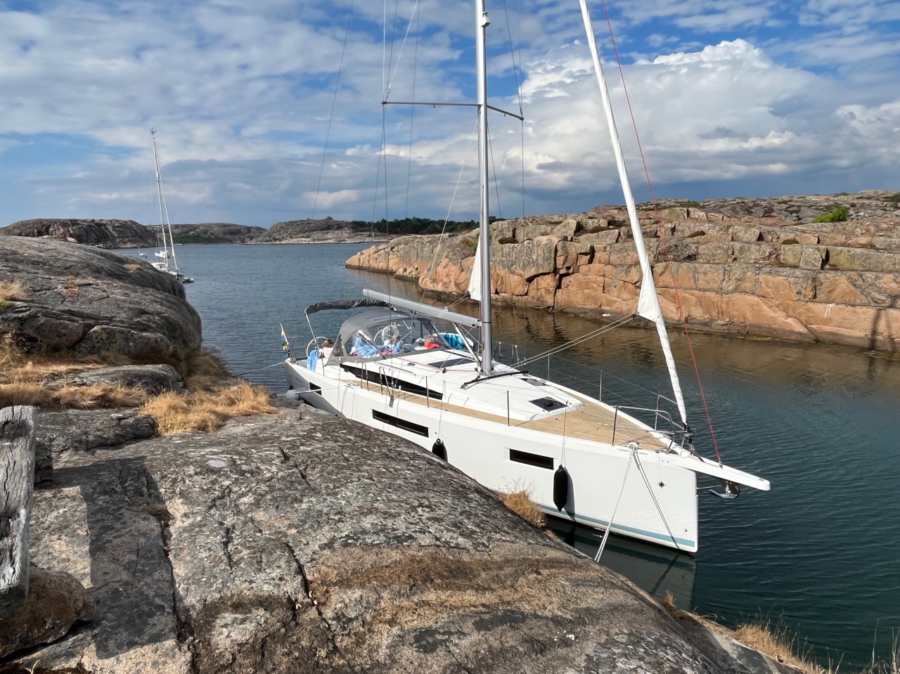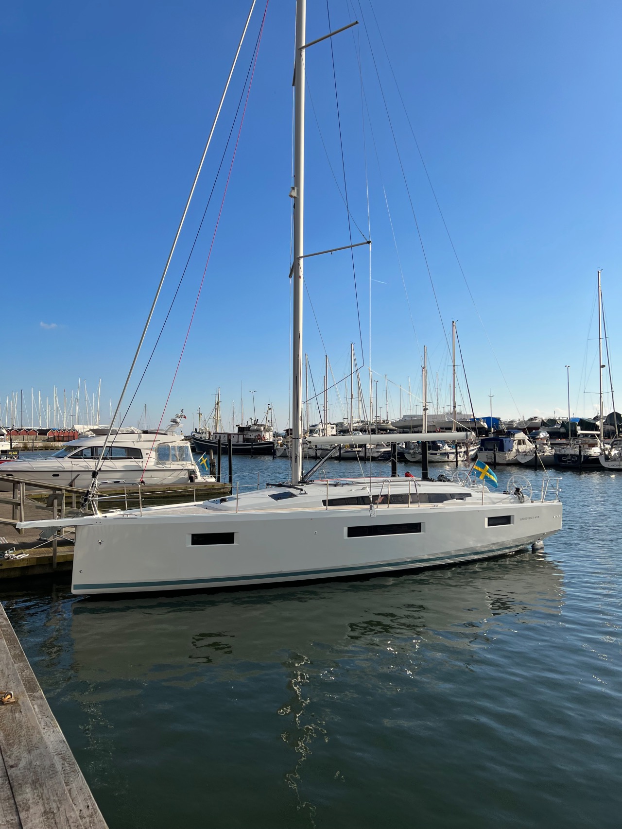 Båten är utrustad med självslående fock för bekväm cruising och vid manövrering i marinor finns både bog och akterthruster.